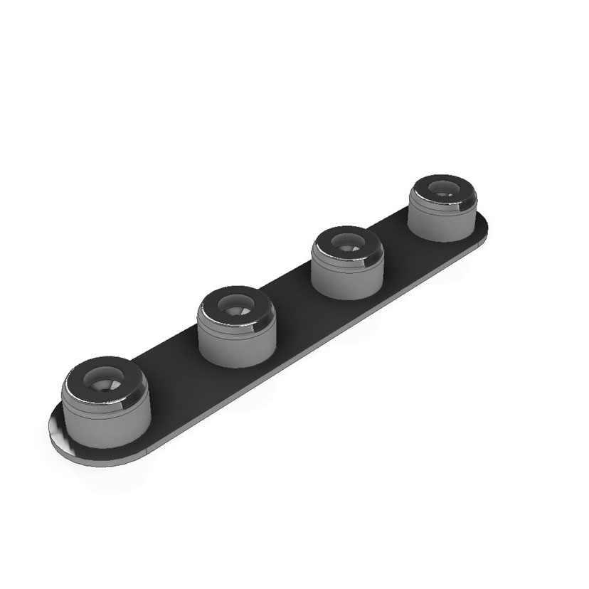 Unser bekannter, stabiler, verchromter Stahl-Pin mit 4 Kugeln mit Ø30 mit geradlinig verlaufendem M8-Gewinde. Dieser Pin wird oftmals bei geraden Verbindungen von Rahmen verwendet.