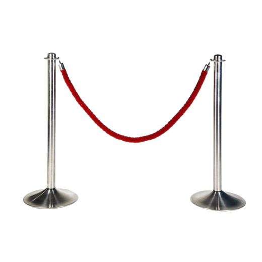 Der maximale Abstand zwischen den Pfosten beträgt 170cm. Die Kordel ist in schwarz, rot und blau erhältlich und hat einen Durchmesser von 35mm. Der Pfosten ist aus Edelstahl, hat eine Höhe von 95 cm und wiegt 8.5 Kg.