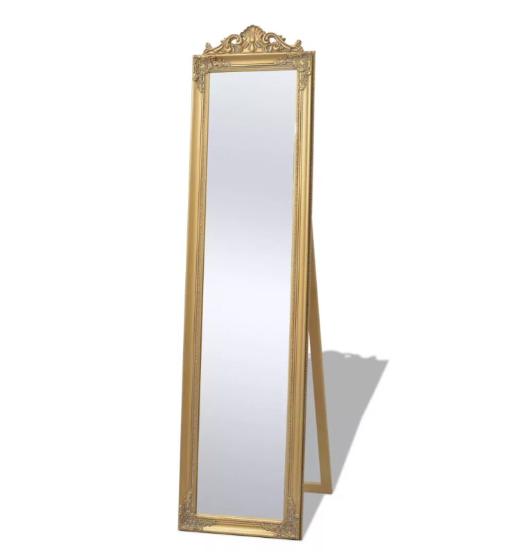 Ganzkörper-Spiegel mit einem verzierten Rahmen im Barockstil.