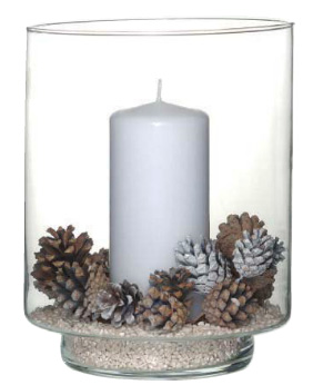 Dieses edle Windlicht kann mit diversen Dekomaterialien und einer Kerze befüllt werden. Standardmässig haben wir diese Tannenzapfen für die perfekte Weihnachtsdeko verfügbar.